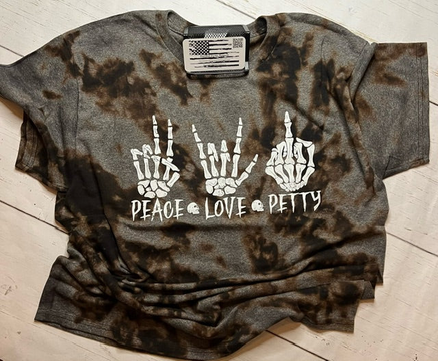 Peace - Love - Petty is a Soft-Style T-Shirt featuring bold, custom designs on a soft ring-spun cotton fabric for a comfortable fit. The perfect choice for those seeking to add a bit of fun and style to their wardrobe. Available in a variety of sizes and colors and also available on a Sweatshirt or Tote Bag.
